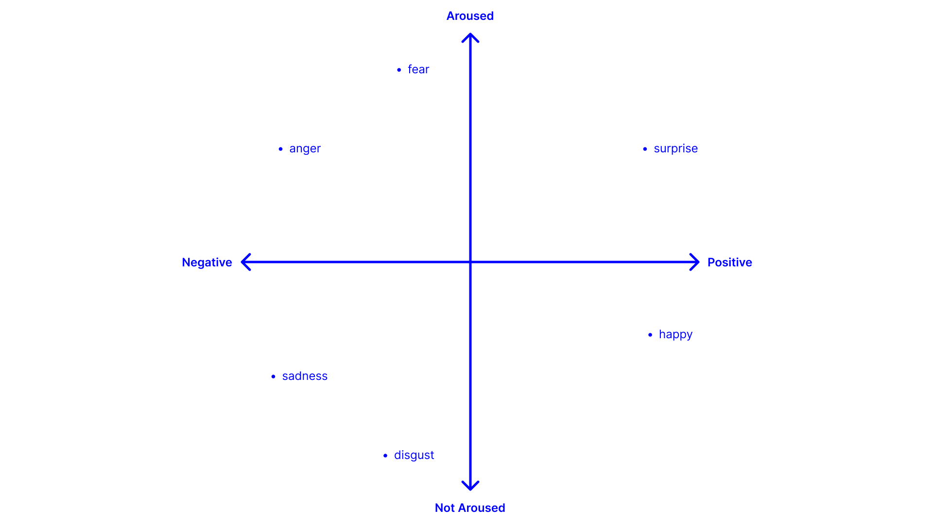 This approach will determine how each emotion should behave in the automated animation. For example, ‘Fear’ is plotted on the negative side of the X-axis but higher on the Y-axis, suggesting that it is an intense emotion. I would imagine ‘Fear’ would have a high volume of texture interacting at high speed motion. This would represent the thousands of thoughts we have in our head when we are scared or anxious.