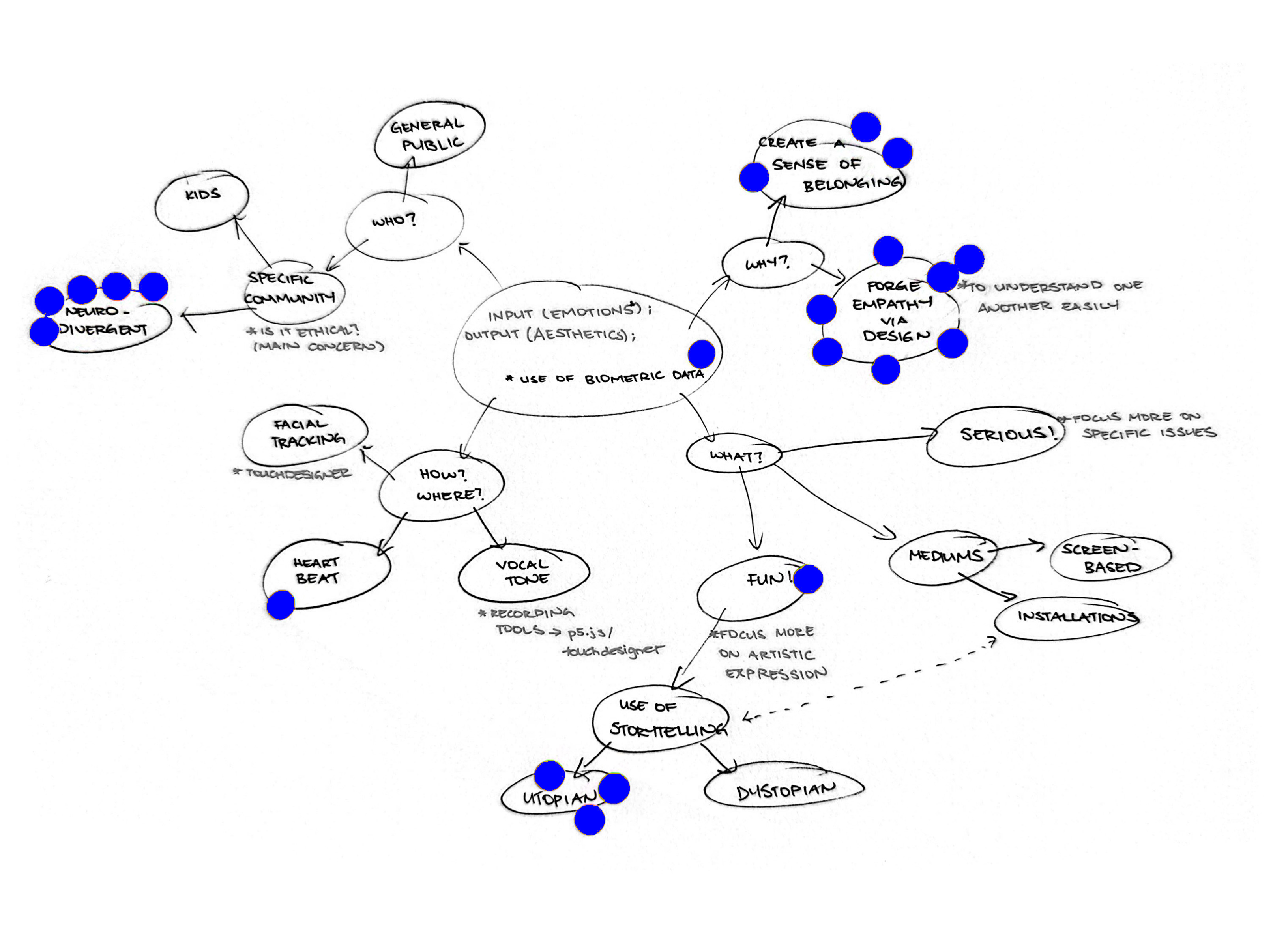 ➀ Who? Neuro-divergent community. I had thoughts of working with kids with autism. This idea sparked because I had a kid with autism participating in my art class one time. It was brutally challenging for me as I had no prior experience with such a client. I had a hard time understanding him. However, Andreas advised that this topic would be too deep, which I agreed as well. I had my concerns of ethics, performing experiments on kids was one thing, but kids with autism were another.