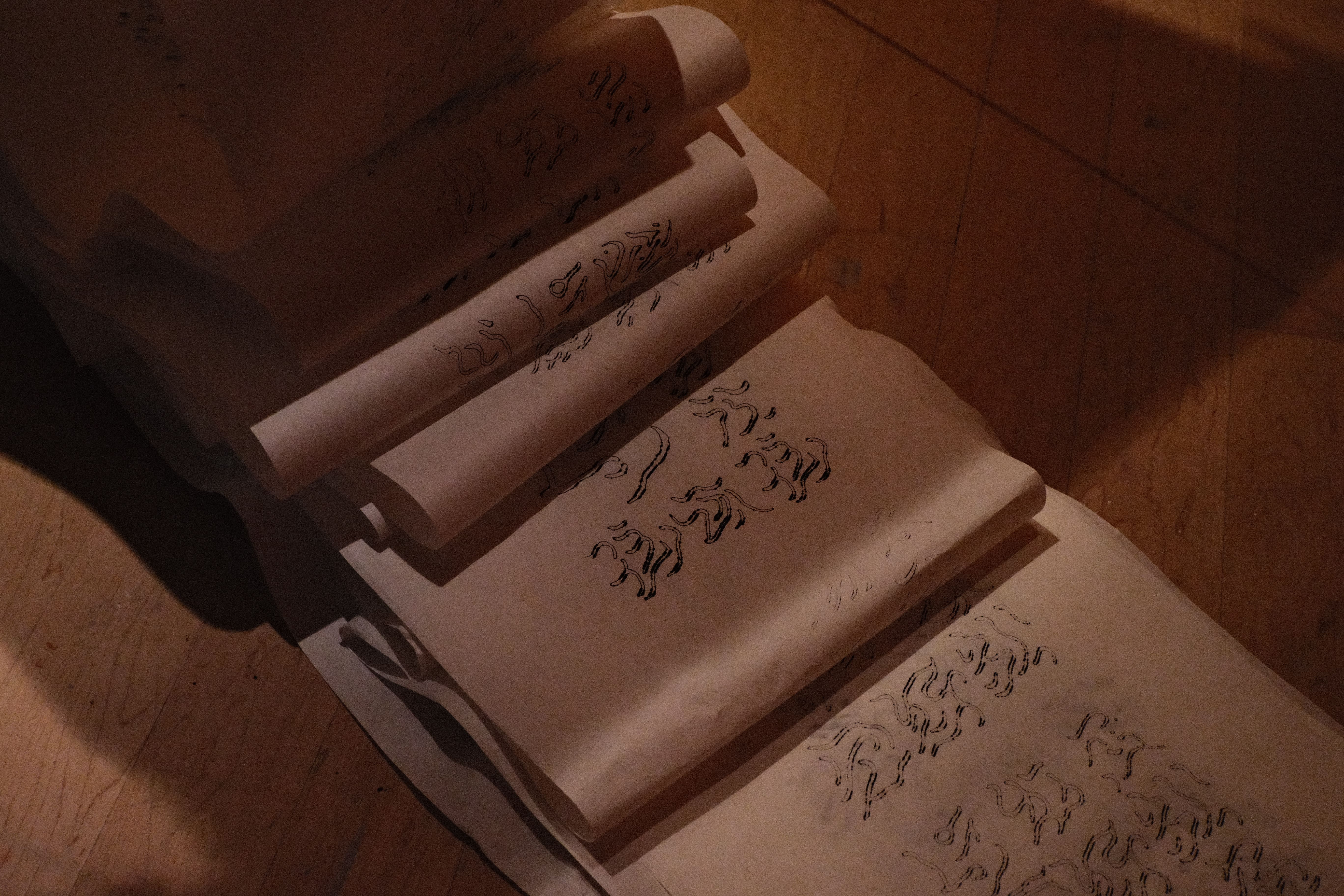 I was inspired by the talismans in Cloud Scripts, exhibited in Another World is Possible. Each talisman functions as a symbolic form of communication between the human and spiritual realms. What intrigued me most was not only tier visual beauty but how these symbols seemed to hold meaning. Each mark was interpretive, not decorative. It led me to wonder — If Ong Kian Peng’s talismans are communicative bridges between human and spirit, could mine become emotional bridges between human and machine?