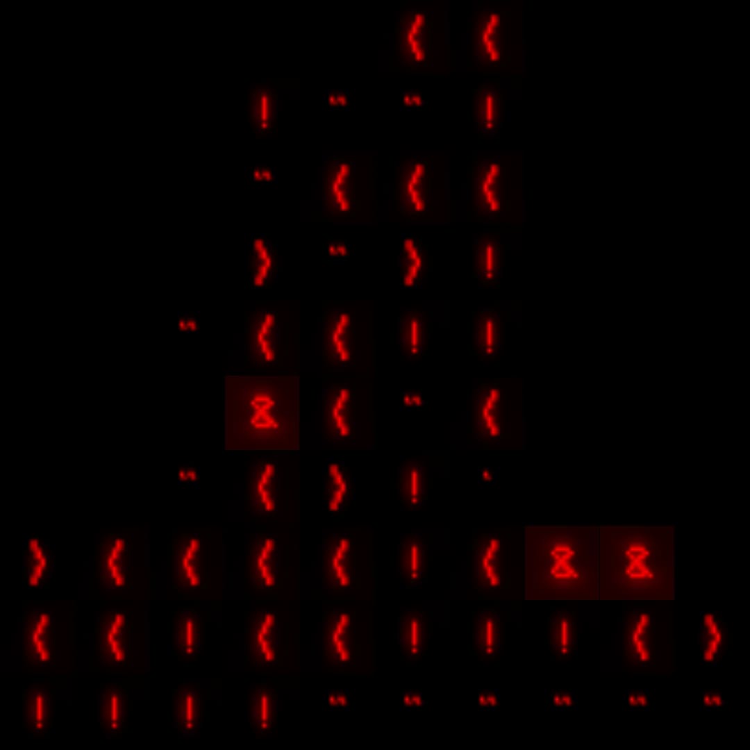 Putting the controller aside for a moment, I shifted my focus to developing the visuals. This was unexpectedly challenging. This process took me a while because I was fickle-minded about the visuals representing emotions. I searched high and low for tutorials and yet not many were appropriate. Eventually, Isimplify my approach and draw inspiration from Tron: Ares (2025). Using pixels, ASCII characters and grid-based structures felt like an effective way to visualise emotions as processed data. They appeared minimal, legible and computational.
