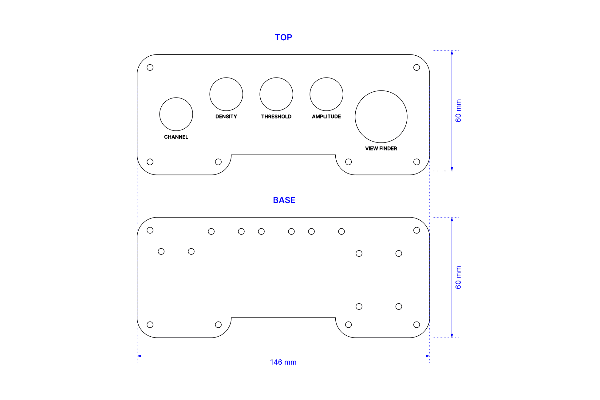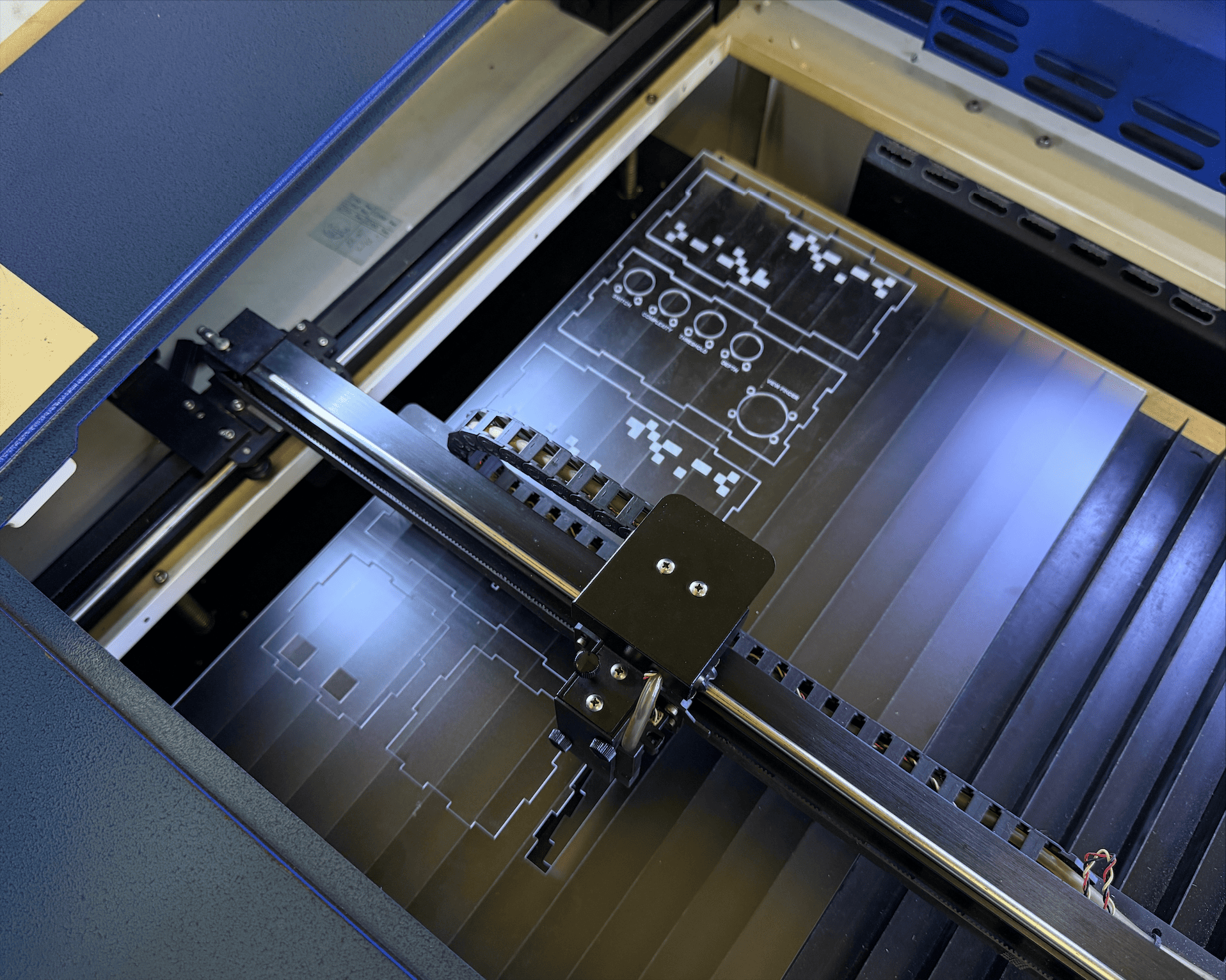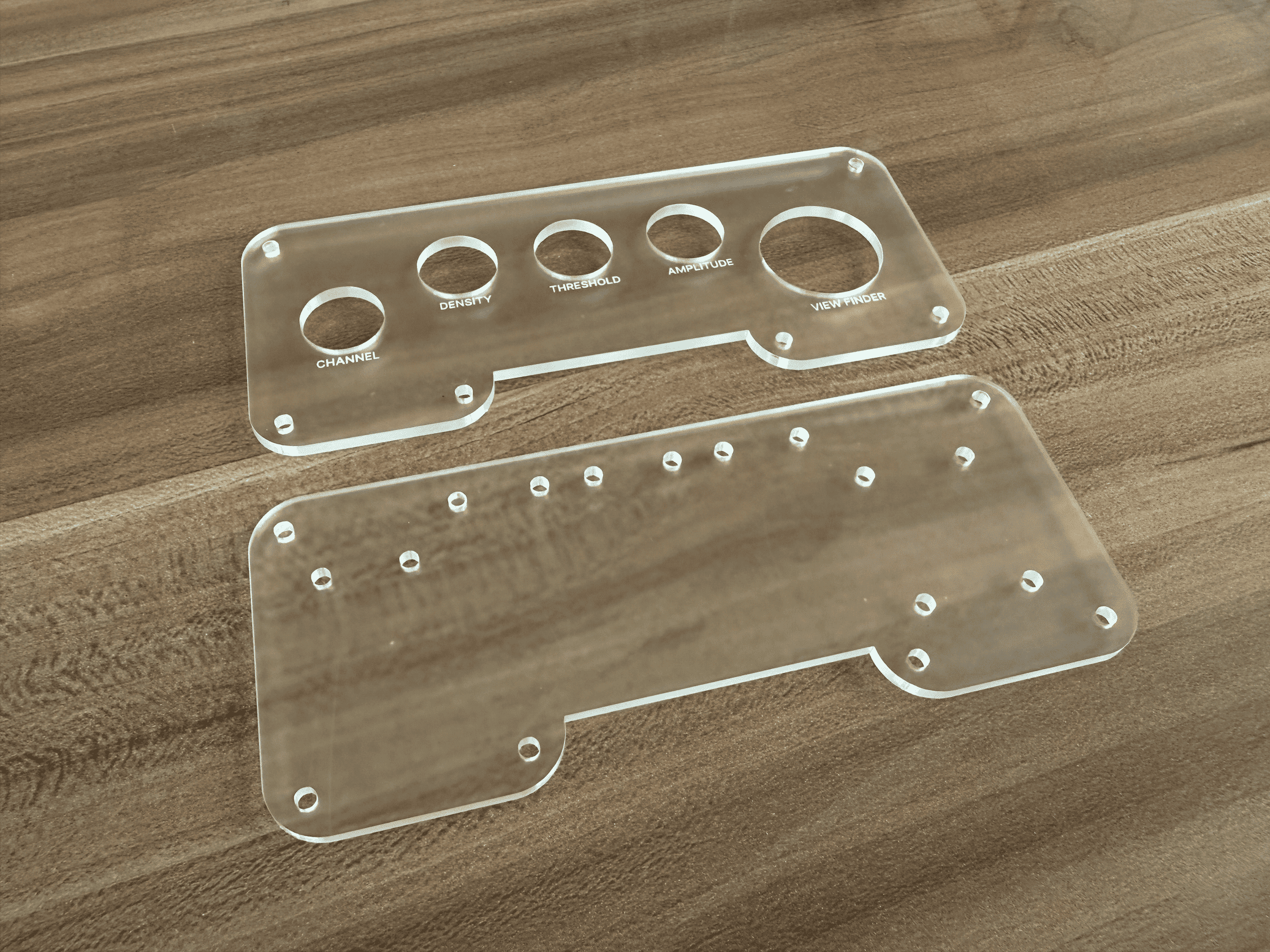 Before committing to a full laser cut, I created a test strip with multiple hole diameters for comparison. Screw holes ranged from 2.5mm to 3.5mm (previously 4mm), potentiometer holes ranged from 16mm to 17.5mm (previously 18mm) and joystick openings ranged between 26mm to 27mm (previously 28mm). This calibration test allowed me to make informed adjustments before cutting the final version.