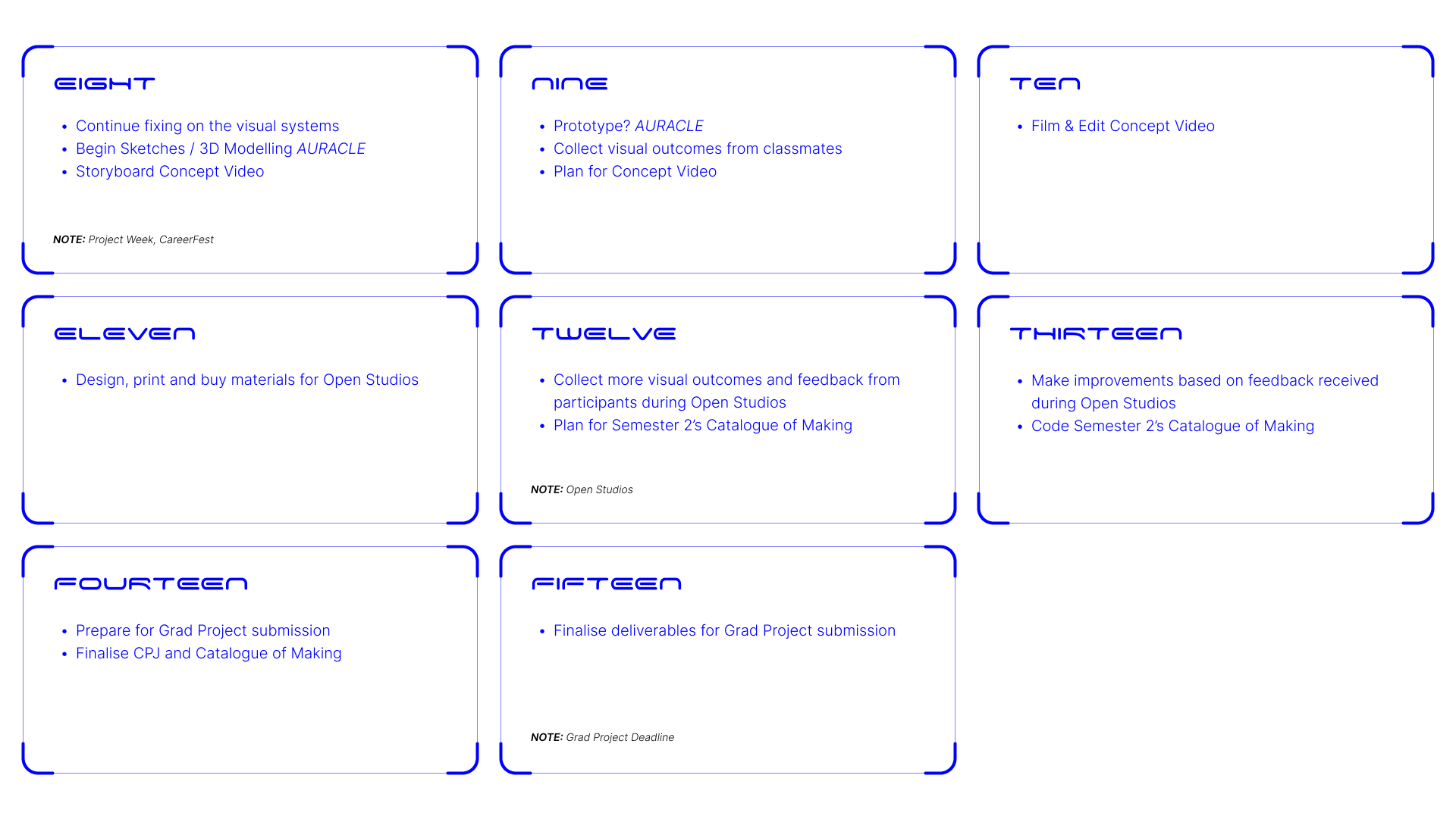 After the feedback, I made a timeline to visualise what I need to do on a weekly-basis till the end of the semester.