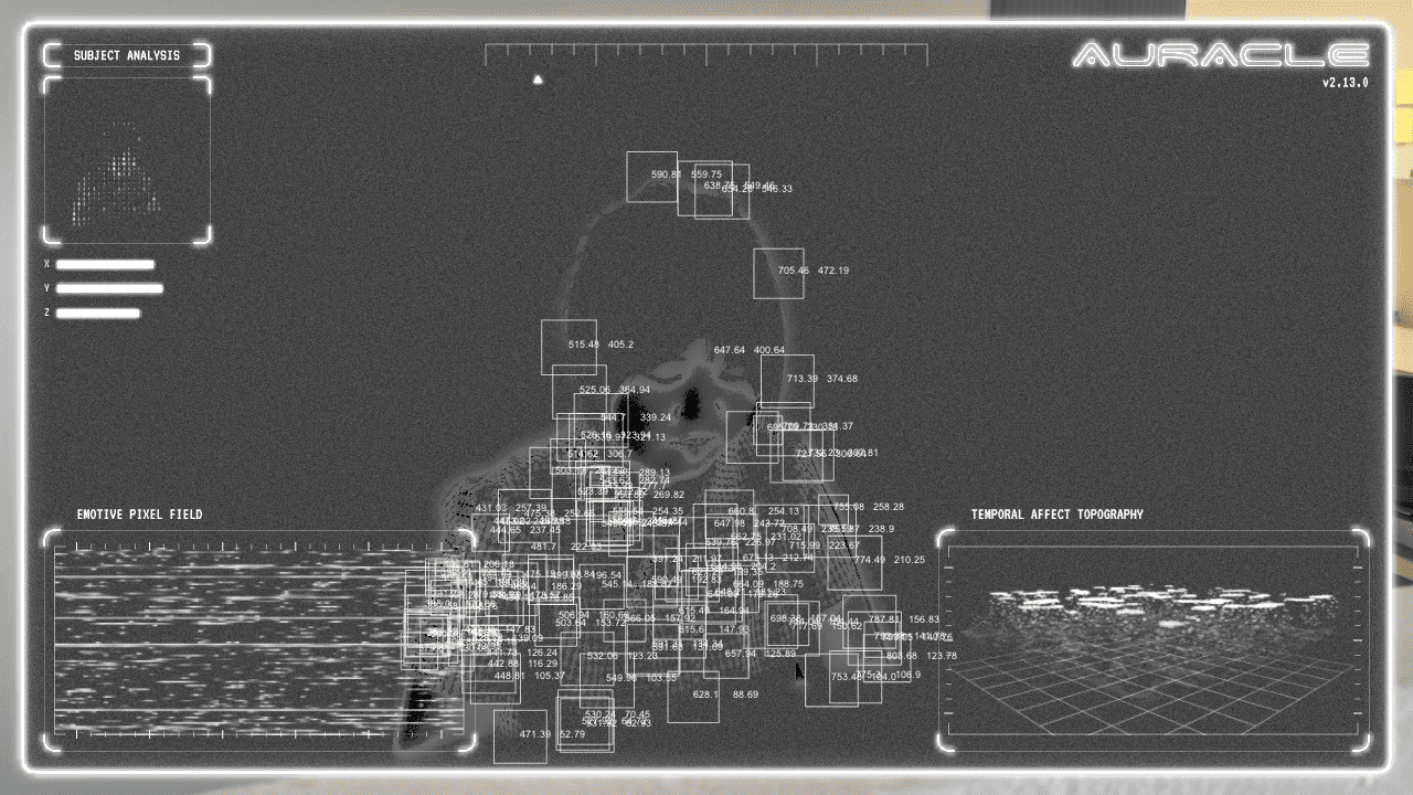 Once uploaded, emotional signatures become publicly accessible through AURACLE, an emotion-sensing eyewear. It allows users to view the emotional states of others in real time. In theory, this technology reduces ambiguity in everyday social interactions by making emotions visible and readable.